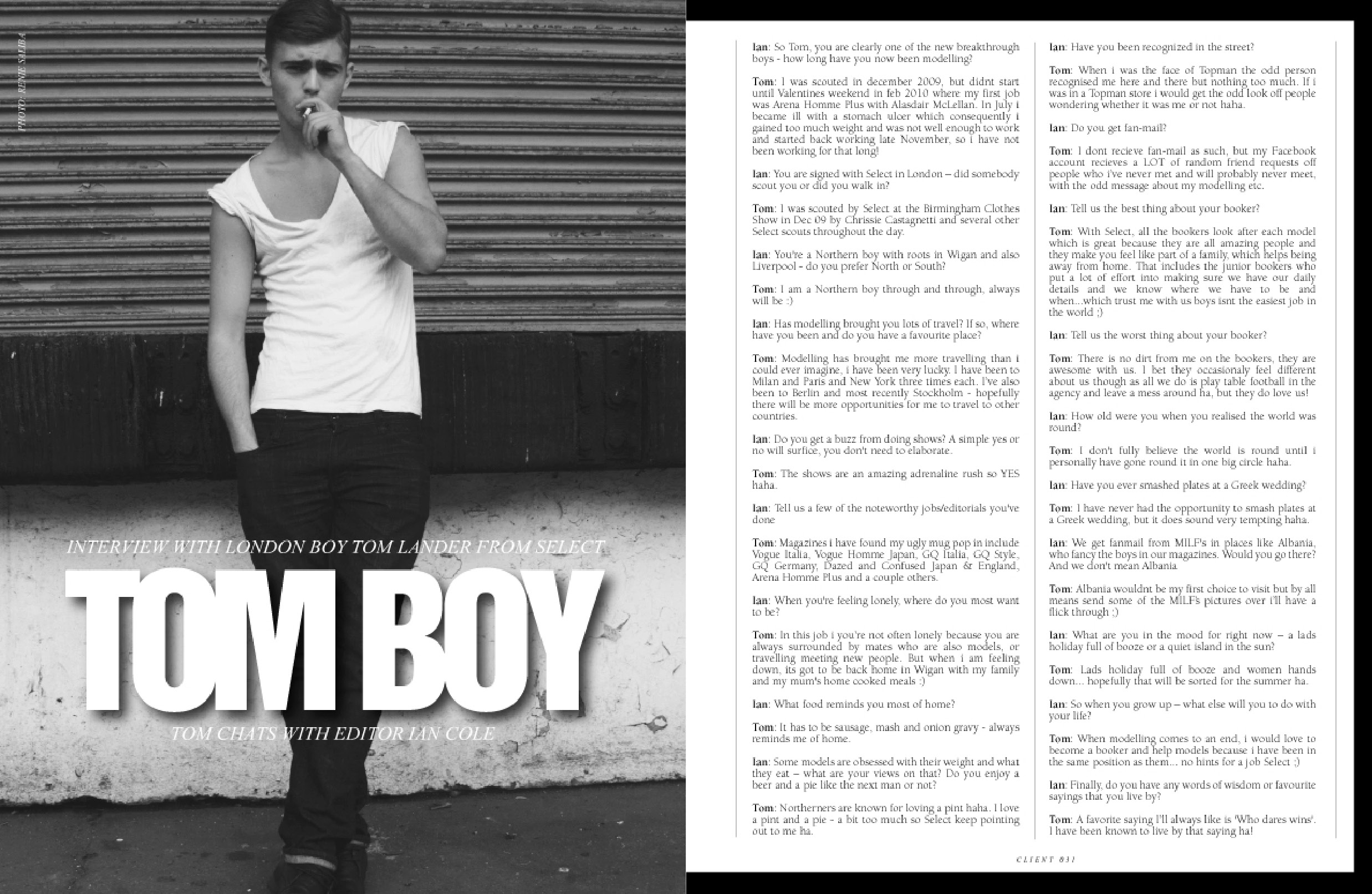 Client Magazine #3 featuring model Sean O’Pry at VNY on the cover, photographed by Saverio Cardia. Published by Ian Cole (APRIL 2011)