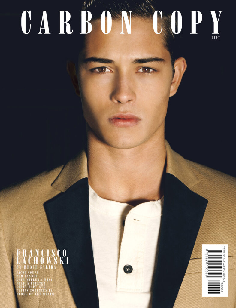 Francisco Lachowski at Ford on the cover of Carbon Copy #7, photographed by Renie Saliba plus Jordan Barrett at What Model Mgmt by Thor Elias Published by Ian Cole (MAY 2011). Available to download as part of an eBook Archive bundle HERE