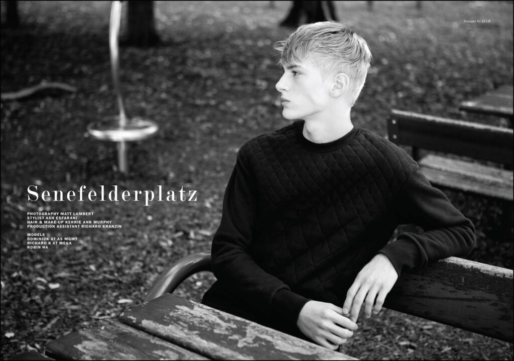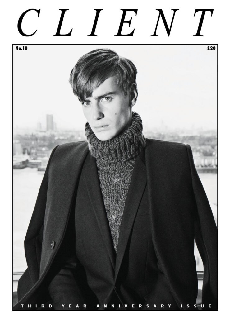 Client Magazine #10 Editor-in-Chief: Ian Cole Photographer: Matt Lambert Stylist: Ash Esfarani Model: Dominik Sadoch at AS Mgmt