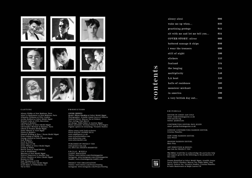 Client Magazine #11 Editor-in-Chief: Ian Cole Photographer: Arnaldo Anaya-Lucca at Defacto Inc Fashion Editor: Marcus Teo Model: Oliver Cheshire at Select