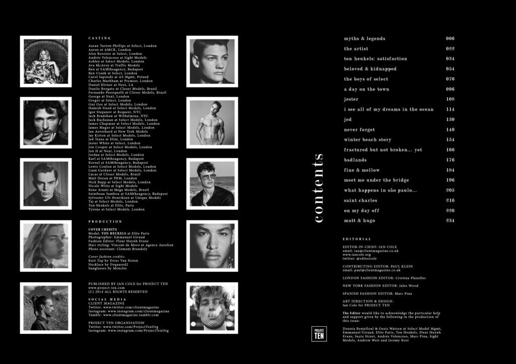 Client Magazine #12 with Ton Heukels at Elite Paris, photographed by Emmanuel Giraud. Published by Ian Cole (2014)