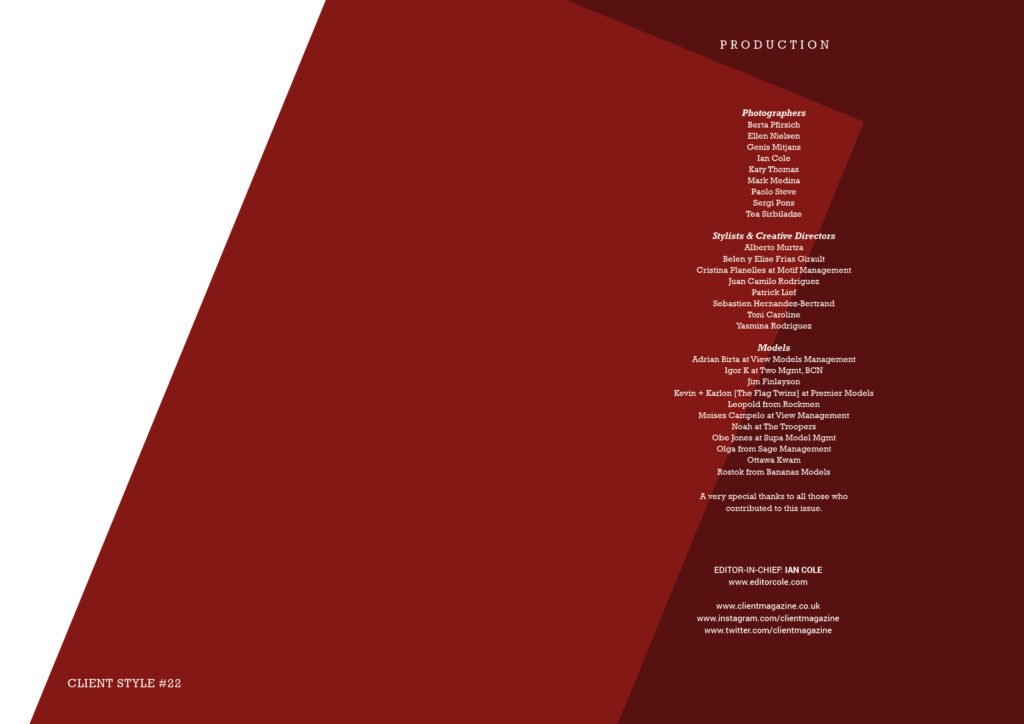 This year, Client celebrates 10 years, from 2010-2020 but due to Coronavirus restrictions we have been unable to produce a special edition that we had planned for the end of the year, but we look forward to doing something in 2021. We thank all of our loyal readers and supporters for keeping Client independent all this time and for evolving with us. Our latest edition of Client Style (#22) features cover model Adrian Birta at View Management, Barcelona, looking a tad aloof and photographed by Berta Pfirsich with styling by our fashion editor Cristina Planelles.