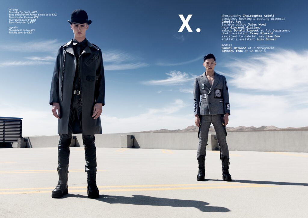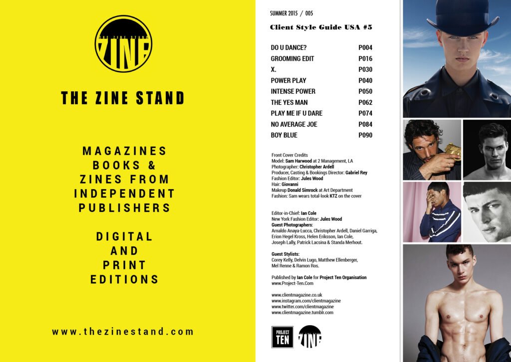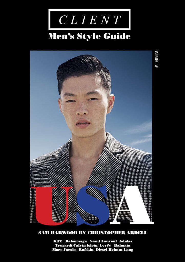 Issue #5 of Client Style Guide USA has a matching front and back cover, the front featuring Sam Harwood at 2 Management and the back with Satoshi Toda at LA Models and both wearing exclusive total-look KTZ. The covers were photographed by Christopher Ardell and styled by Jules Wood under the production of Gabriel Rey.