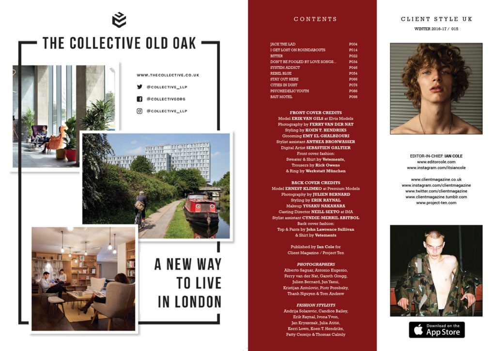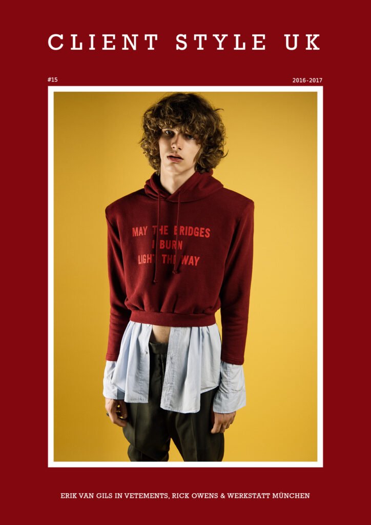 #ClientStyleUK #15 with Erik van Gils at Elvis Models on the front cover photographed by Ferry van der Nat and styled by Koen D. Hendriks. On the cover, Erik wears sweater & shirt by Vetements, trousers by Rick Owens and Ring by Werkstatt München.