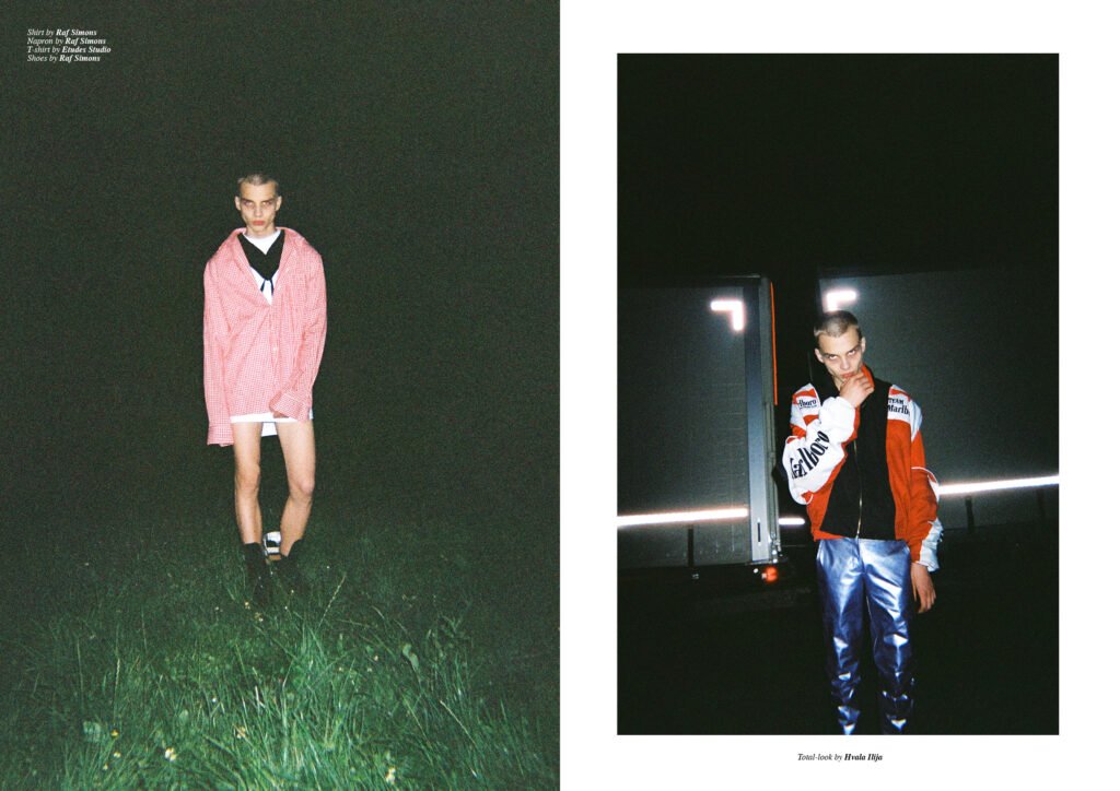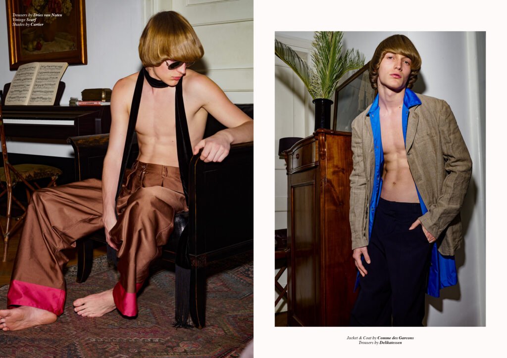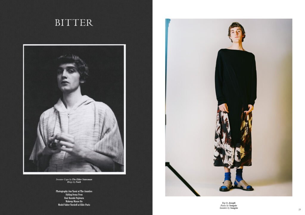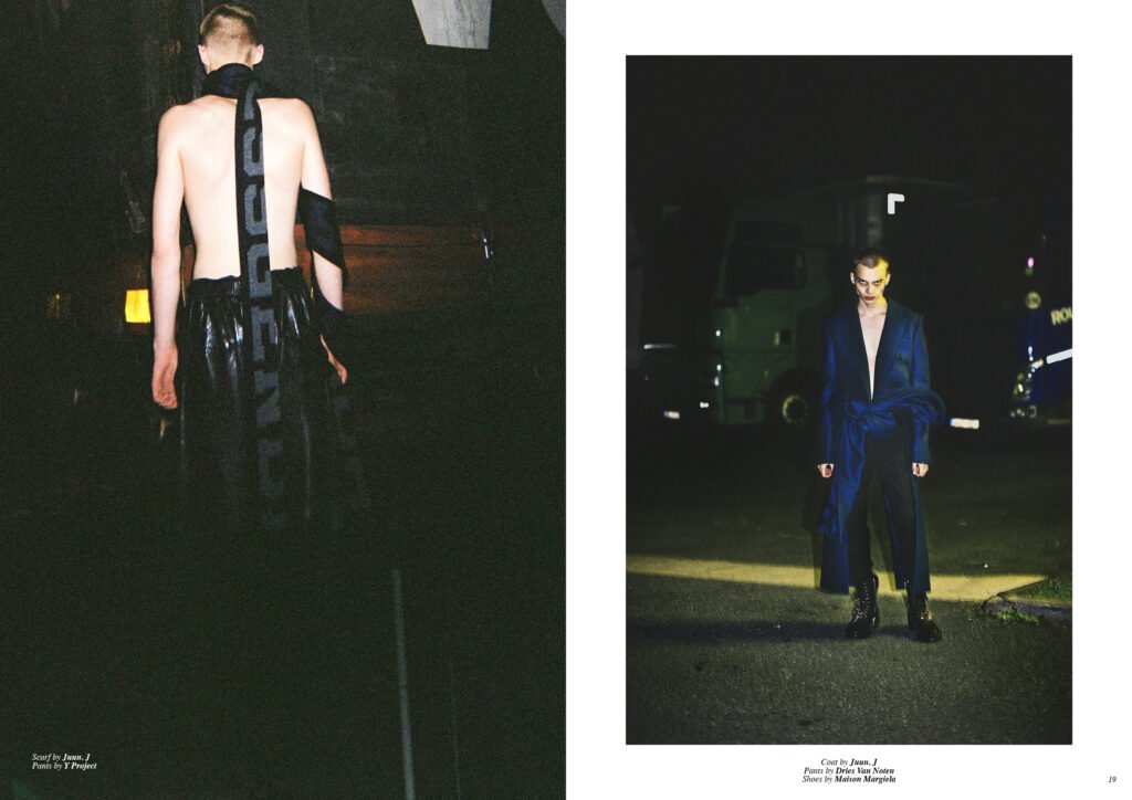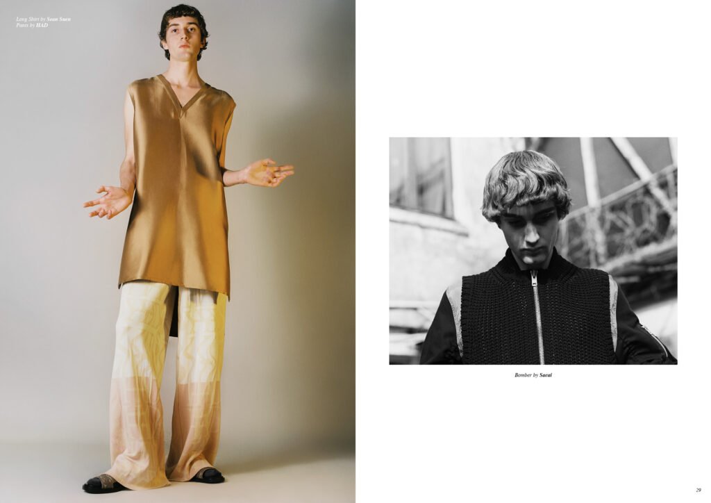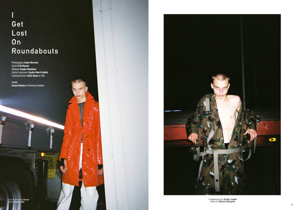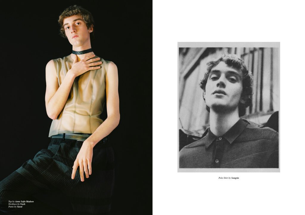 On the back cover is Ernest Klimko at Premium Models, photographed by Julien Bernard and styled by Erik Raynal who dresses Ernest in top & pants by John Lawrence Sullivan and shirt by Vetements.