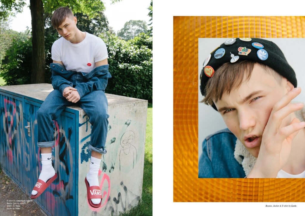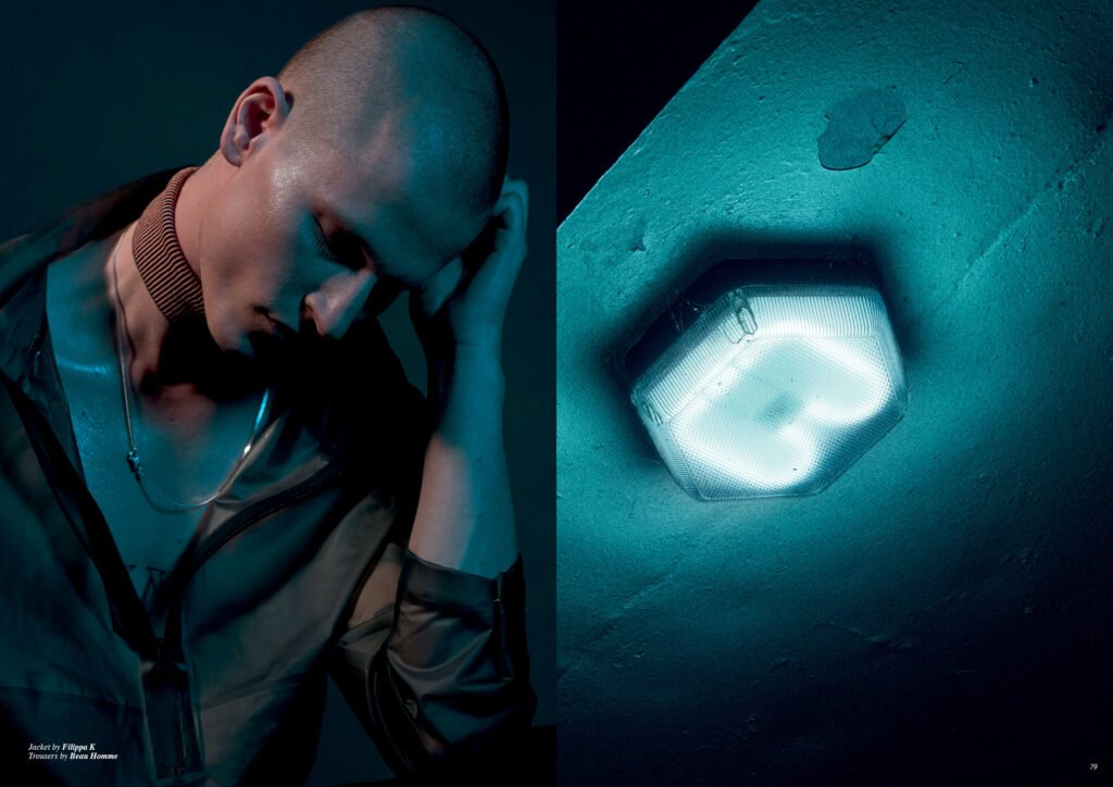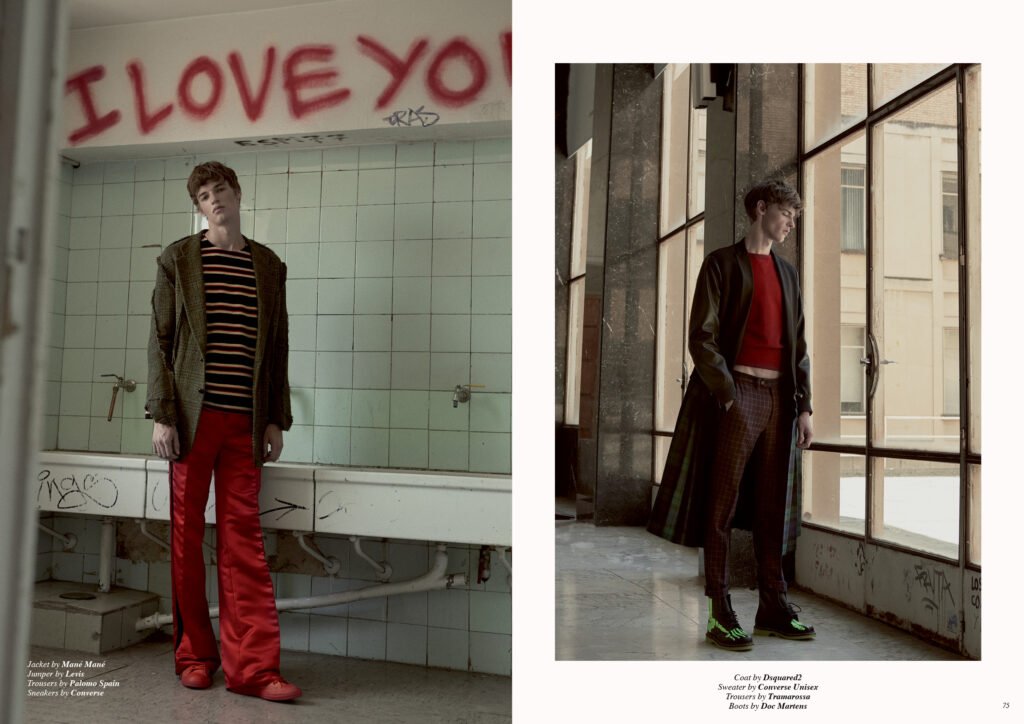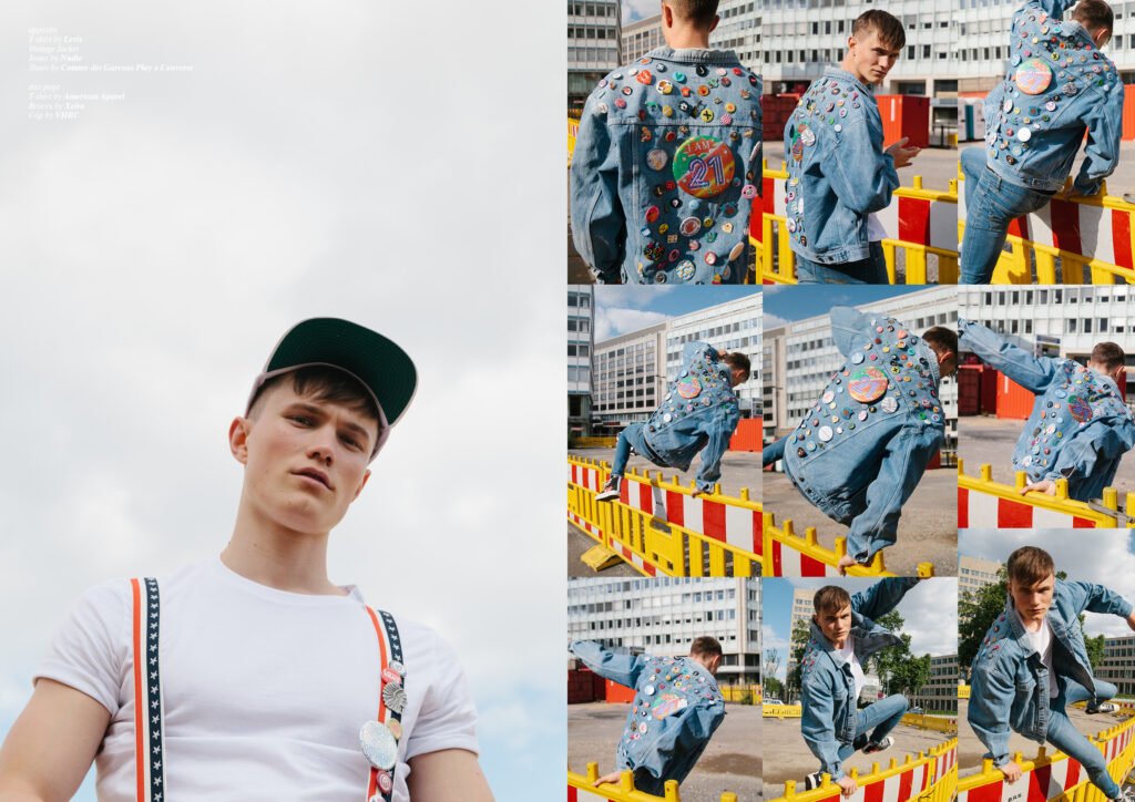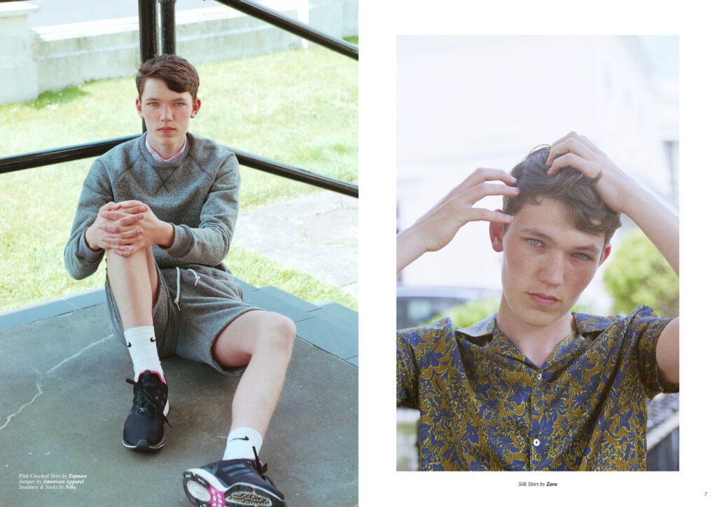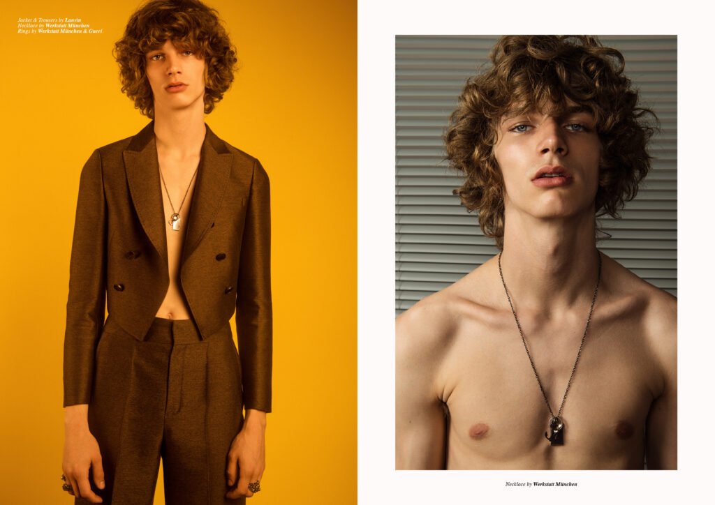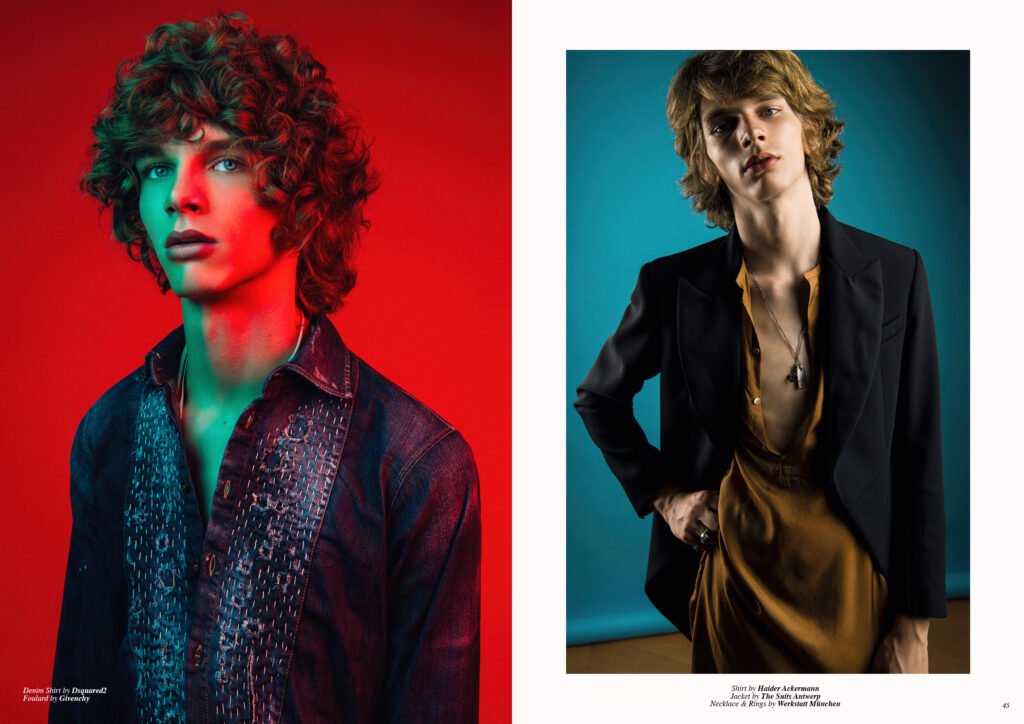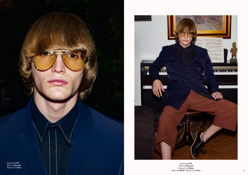 On the back cover is Ernest Klimko at Premium Models, photographed by Julien Bernard and styled by Erik Raynal who dresses Ernest in top & pants by John Lawrence Sullivan and shirt by Vetements.