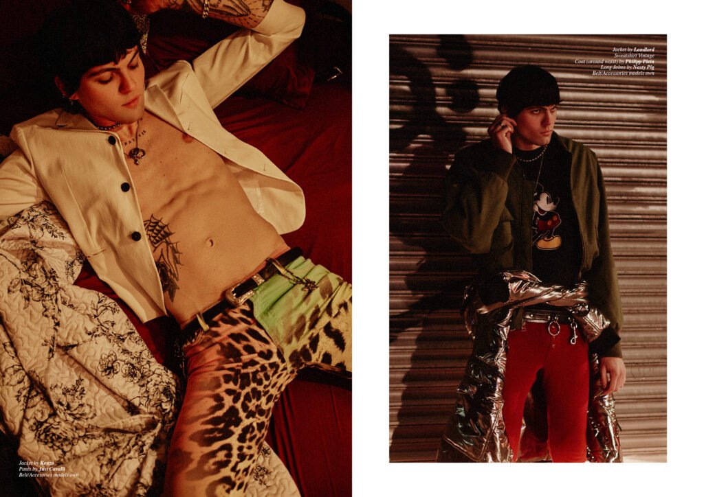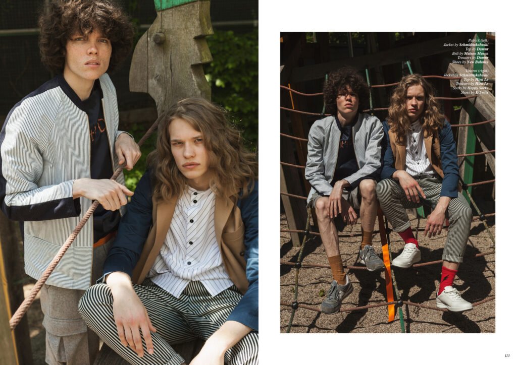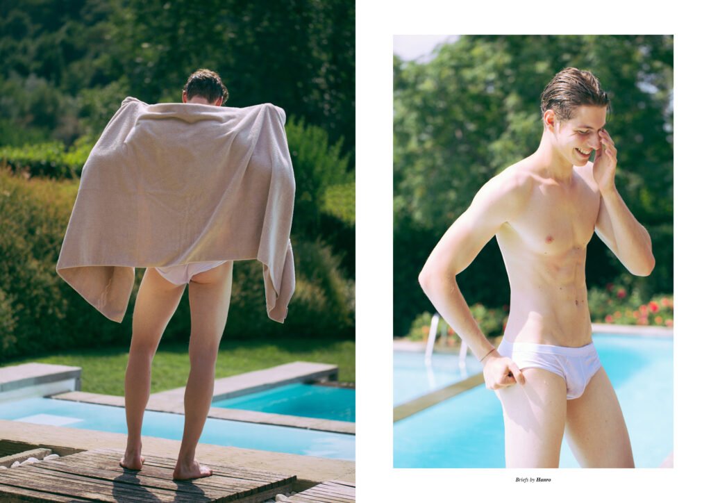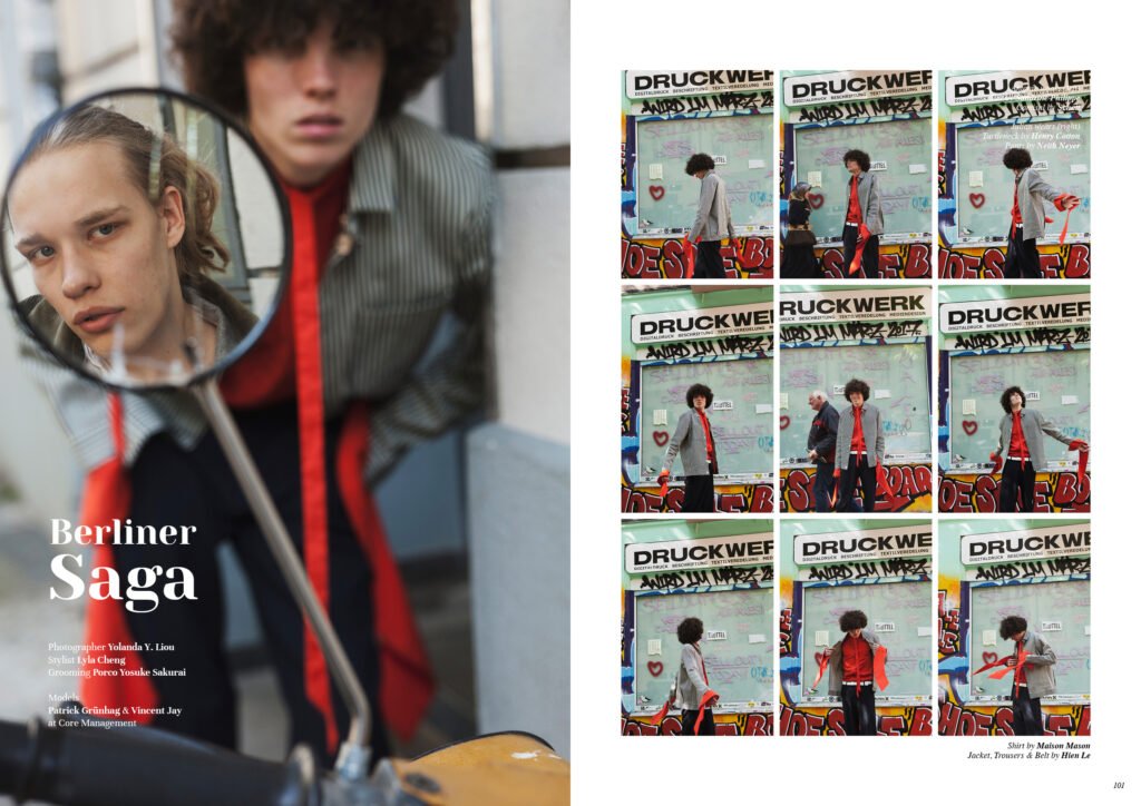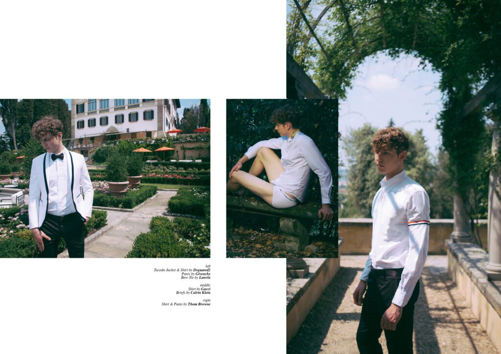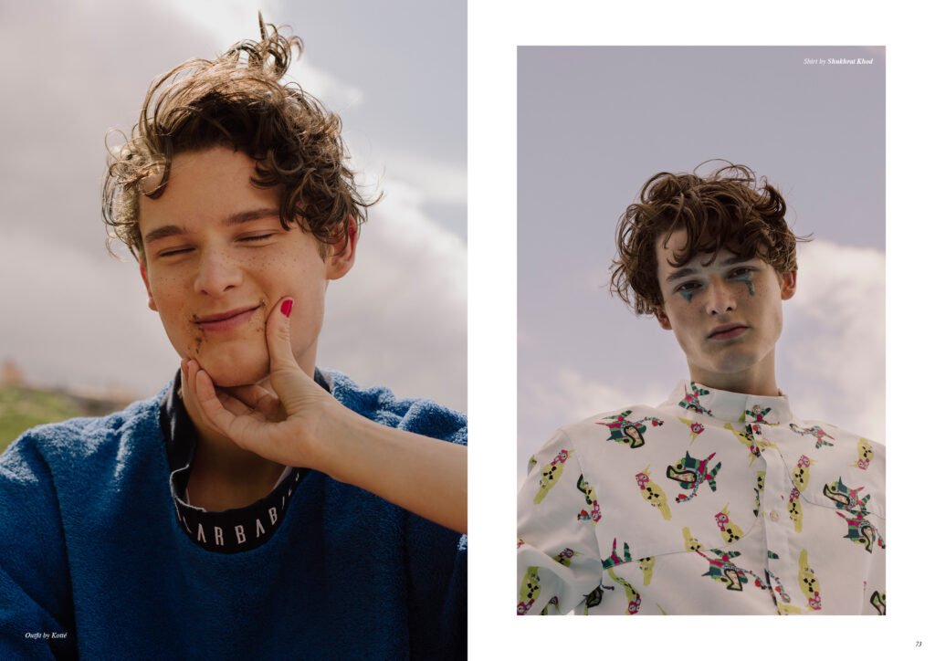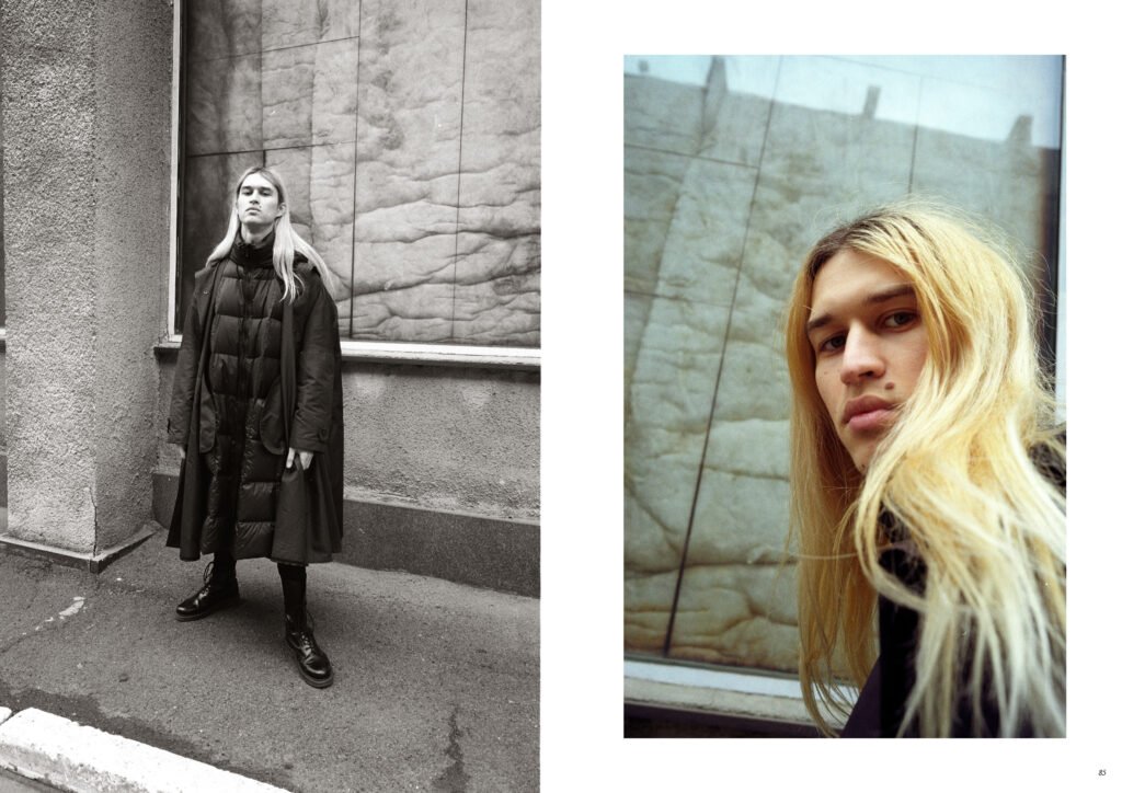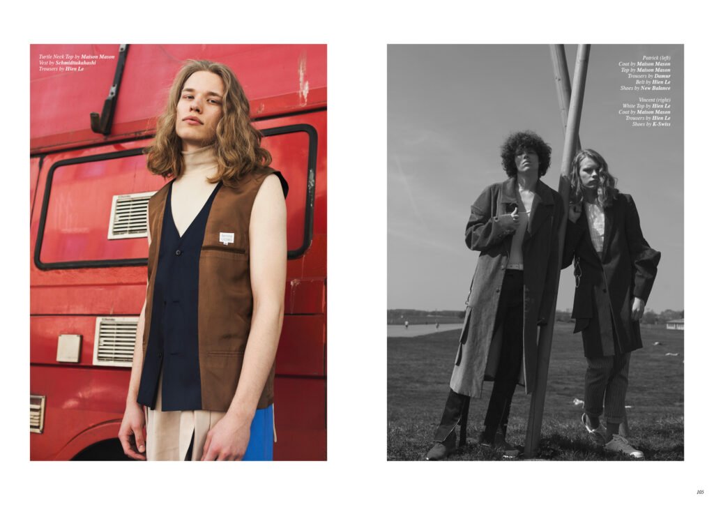 On the back cover, we see Brazilian Jonathan Bellini at Marilyn Agency (Paris) photographed by Ludivine Jamin and styled by Séna Aurélia. Jonathan wears Shirt, Trousers, Socks & Shoes by Lanvin plus Cap by Beechfield. Hair by Sonia Messaoudi using l’Oréal Pro &Corioliss and makeup by Francesco Spadaro.