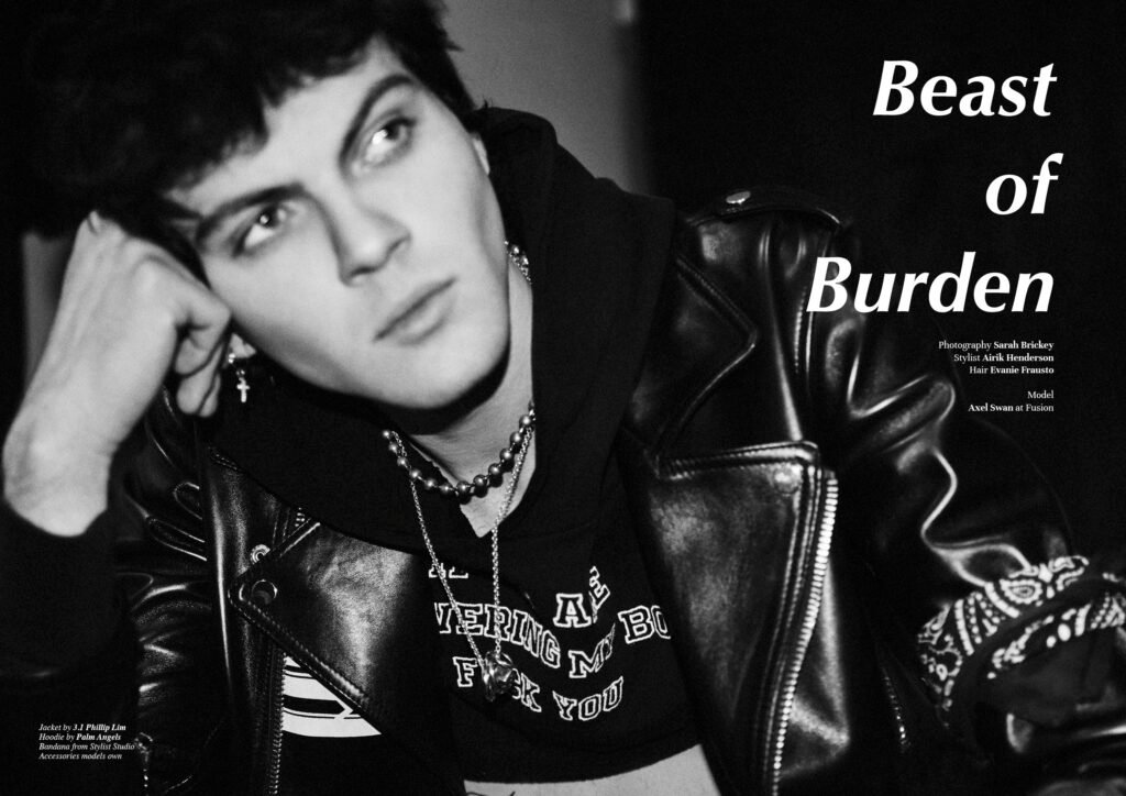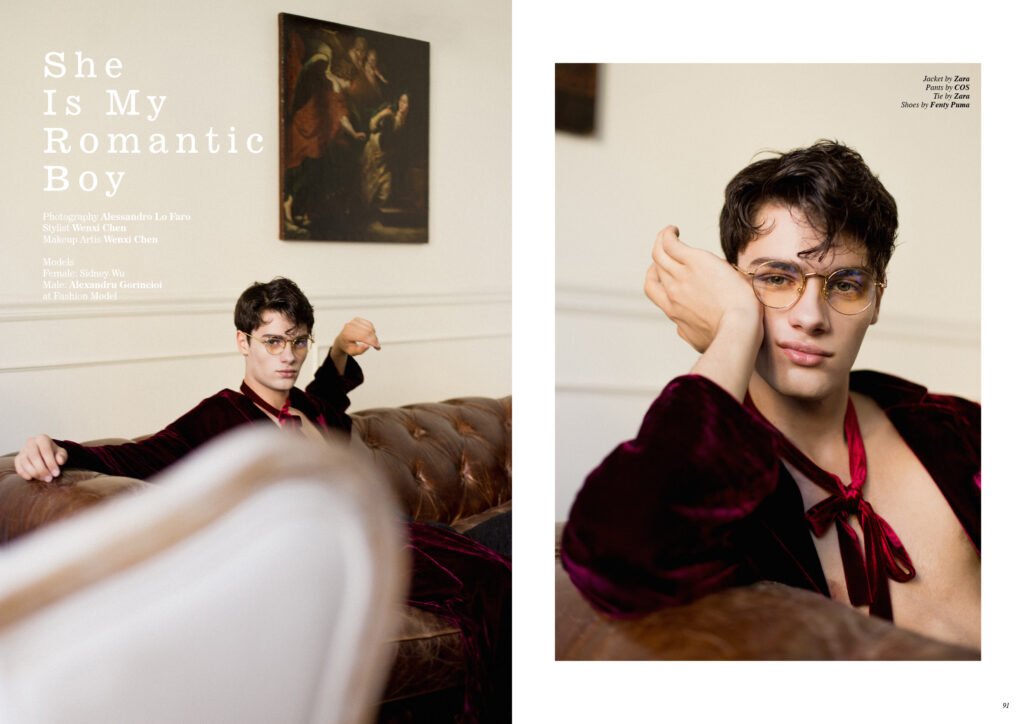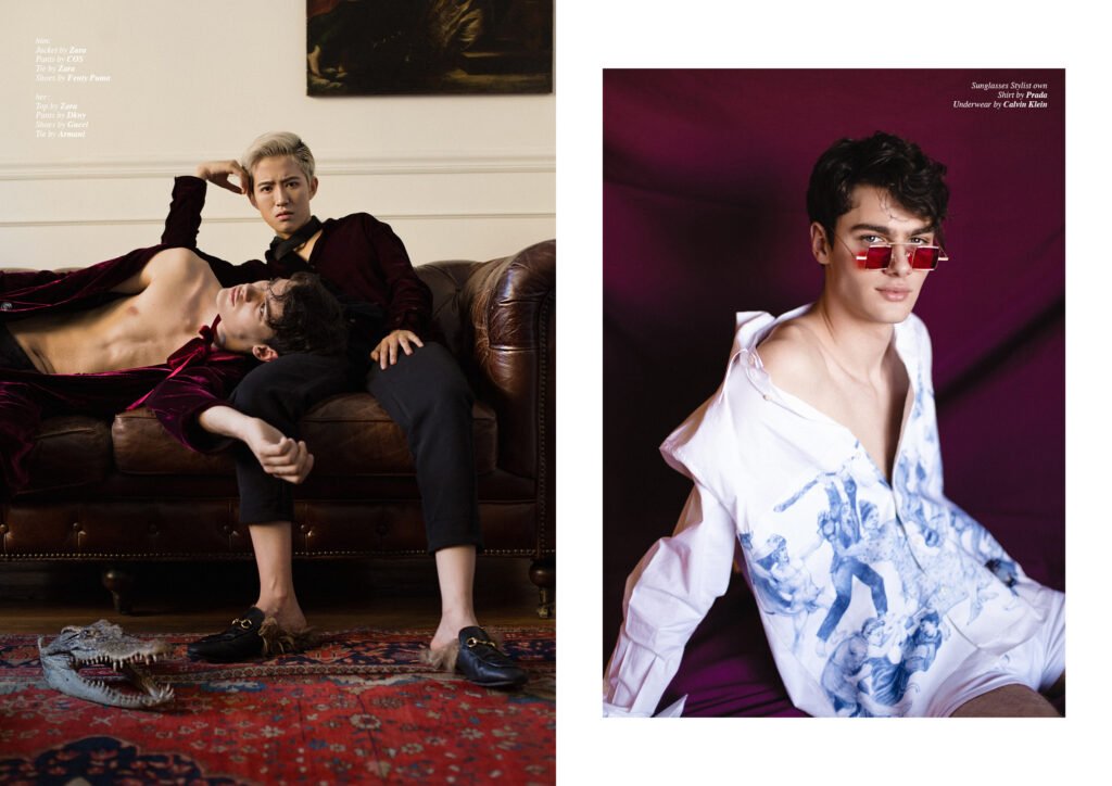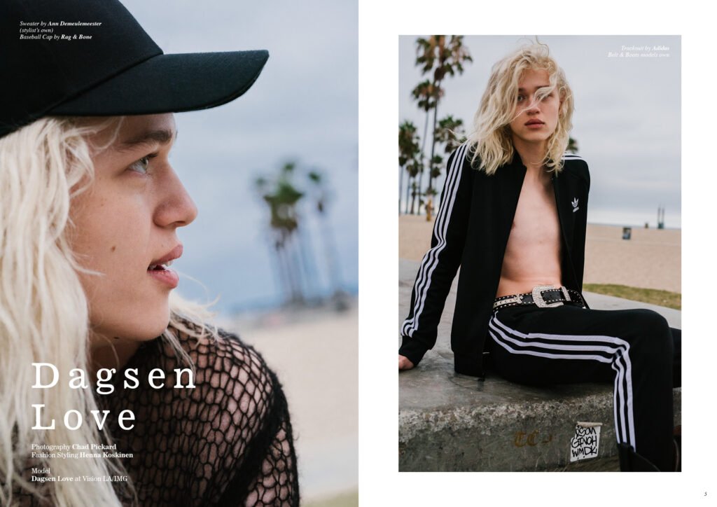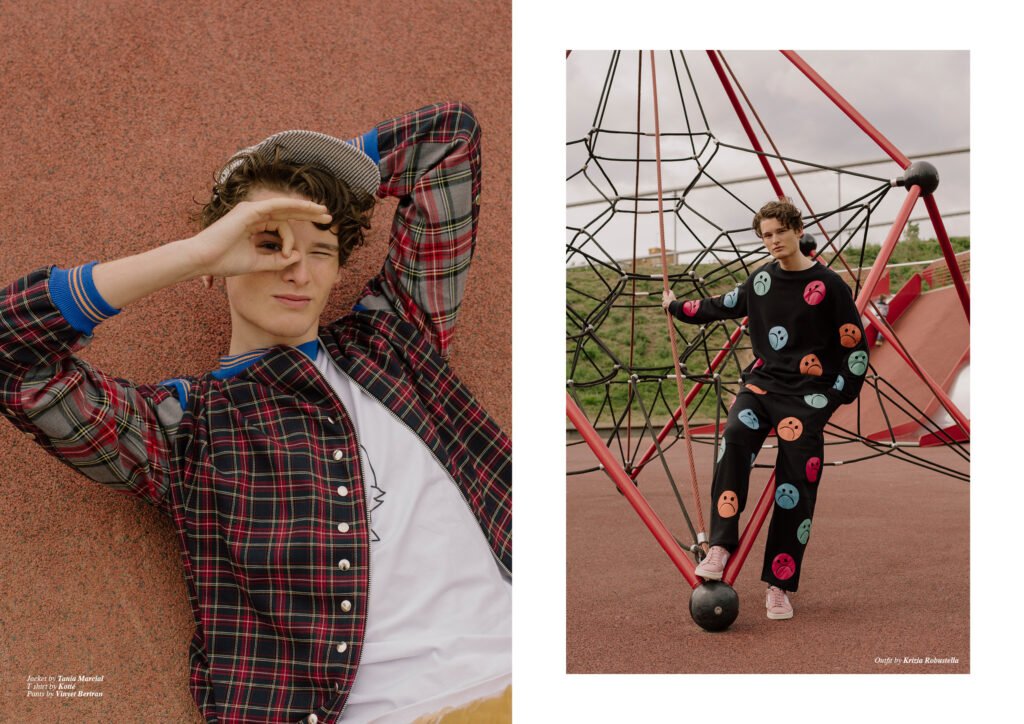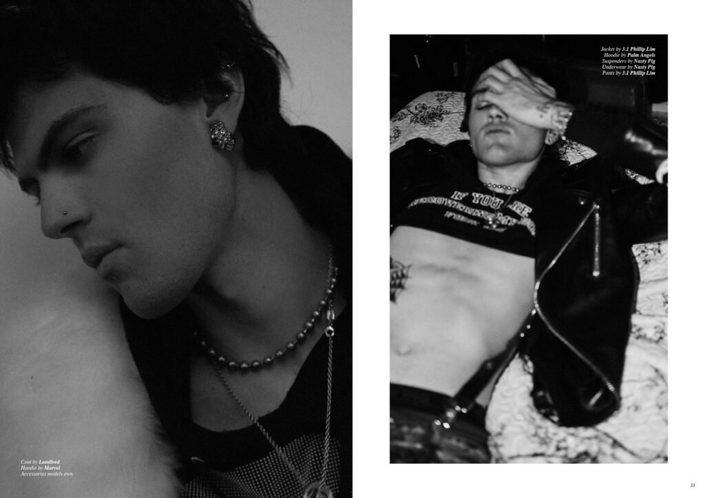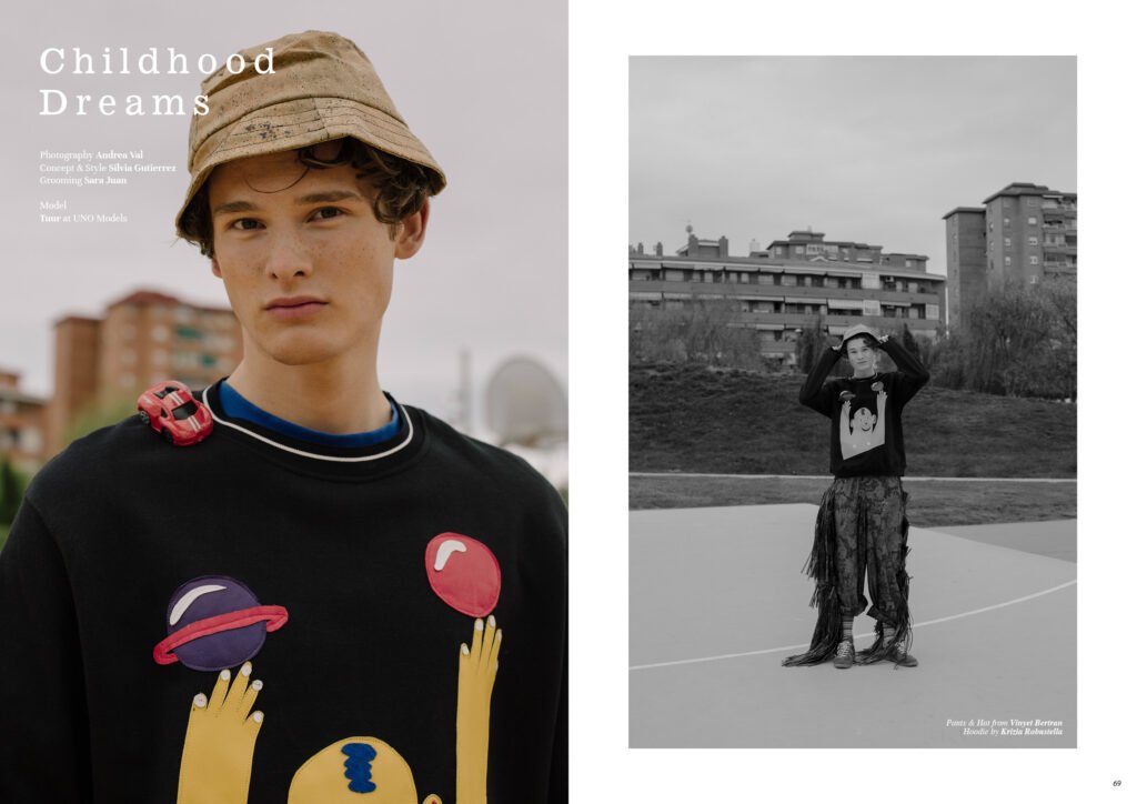 On the back cover, we see Brazilian Jonathan Bellini at Marilyn Agency (Paris) photographed by Ludivine Jamin and styled by Séna Aurélia. Jonathan wears Shirt, Trousers, Socks & Shoes by Lanvin plus Cap by Beechfield. Hair by Sonia Messaoudi using l’Oréal Pro &Corioliss and makeup by Francesco Spadaro.