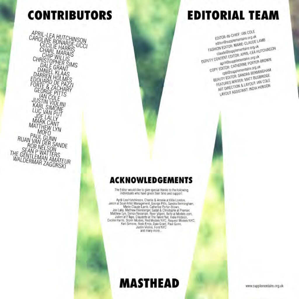 Supplementaire Art & Fashion Journal #4. Published by Ian Cole (December 2011) Available to download HERE